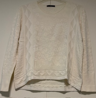 HIGH – aparter weißer Baumwollpullover in ausgefallenem Muster- und Lochstrick